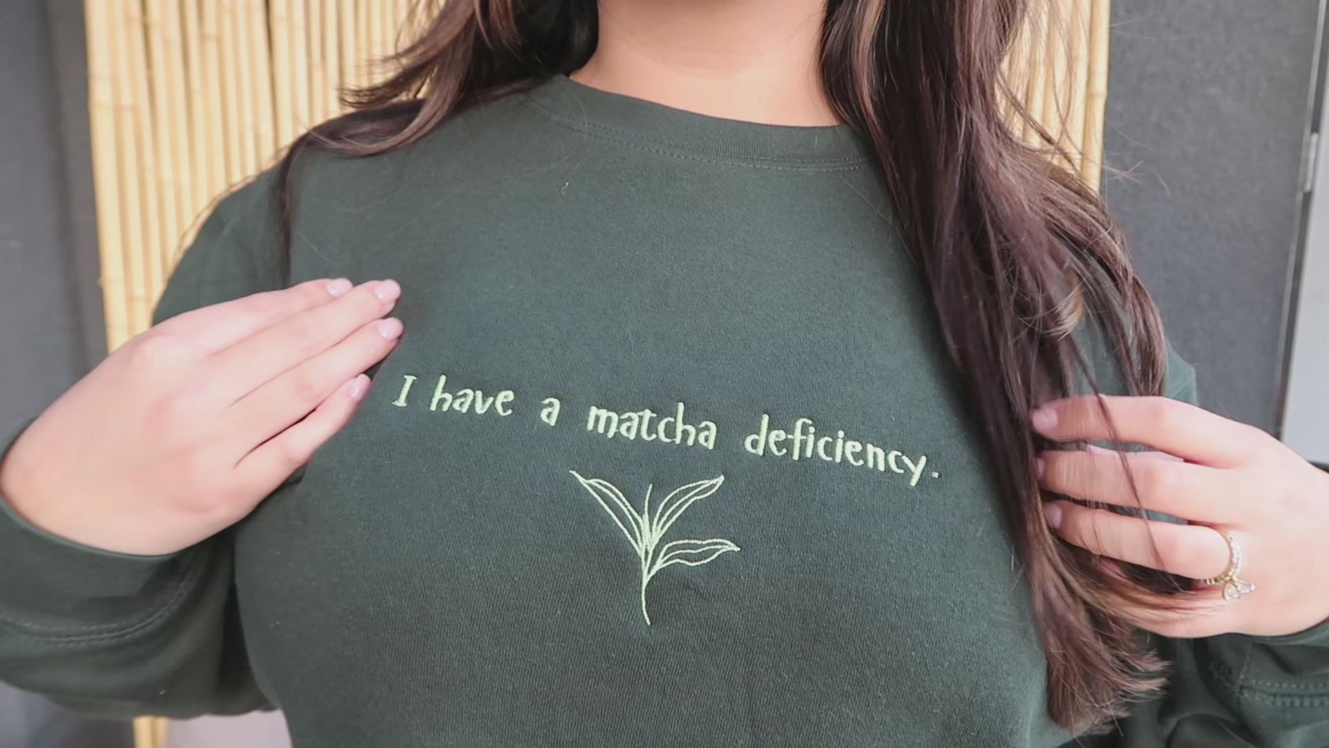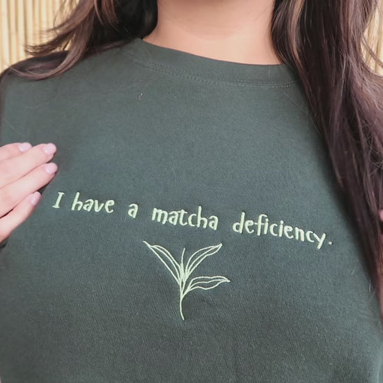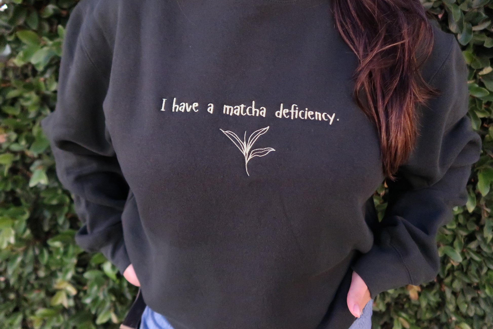 "I Have a Matcha Deficiency" embroidered crewneck sweatshirt-- Unisex Style