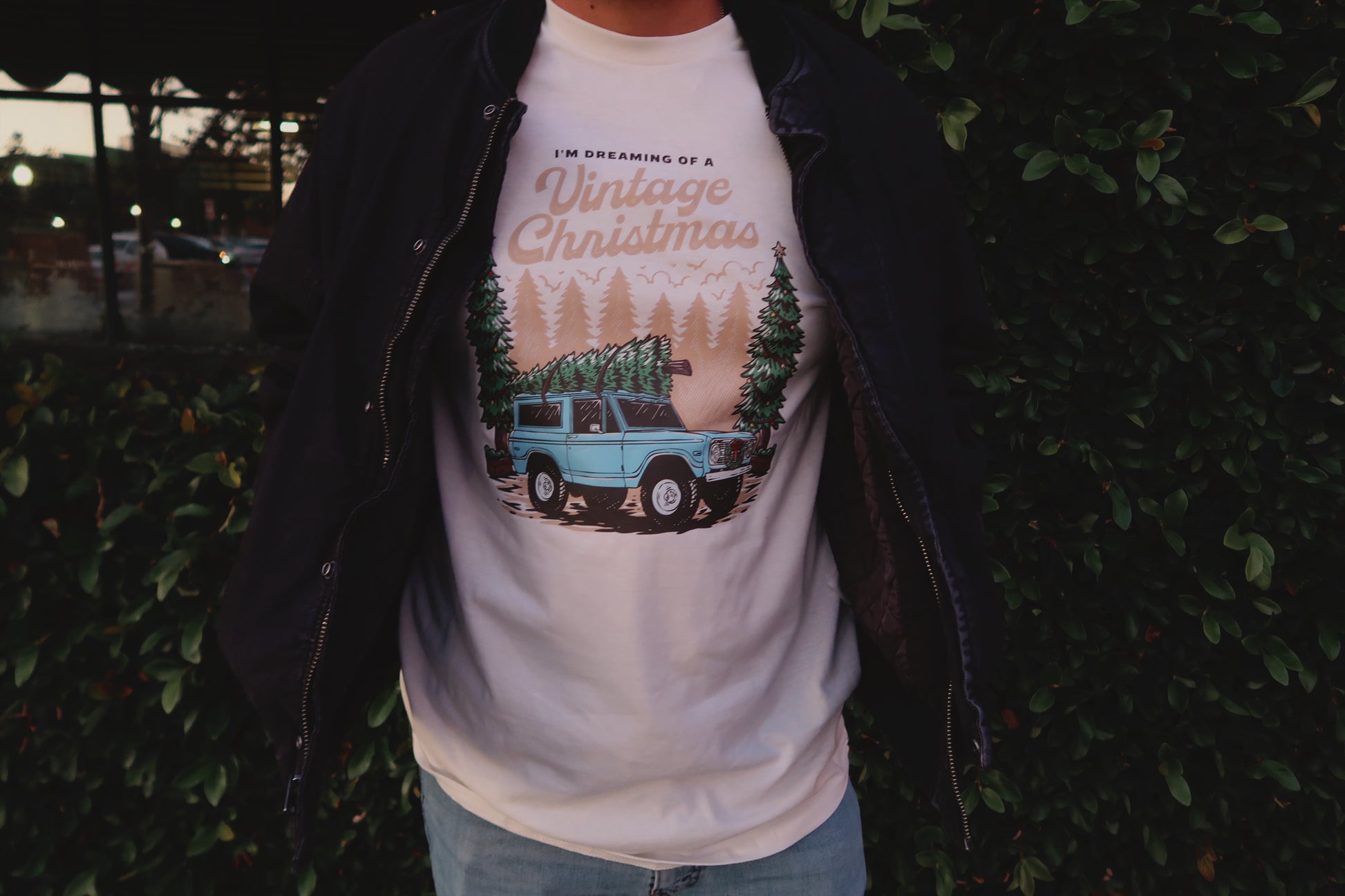 "I'm Dreaming of a Vintage Christmas" printed T-shirt.